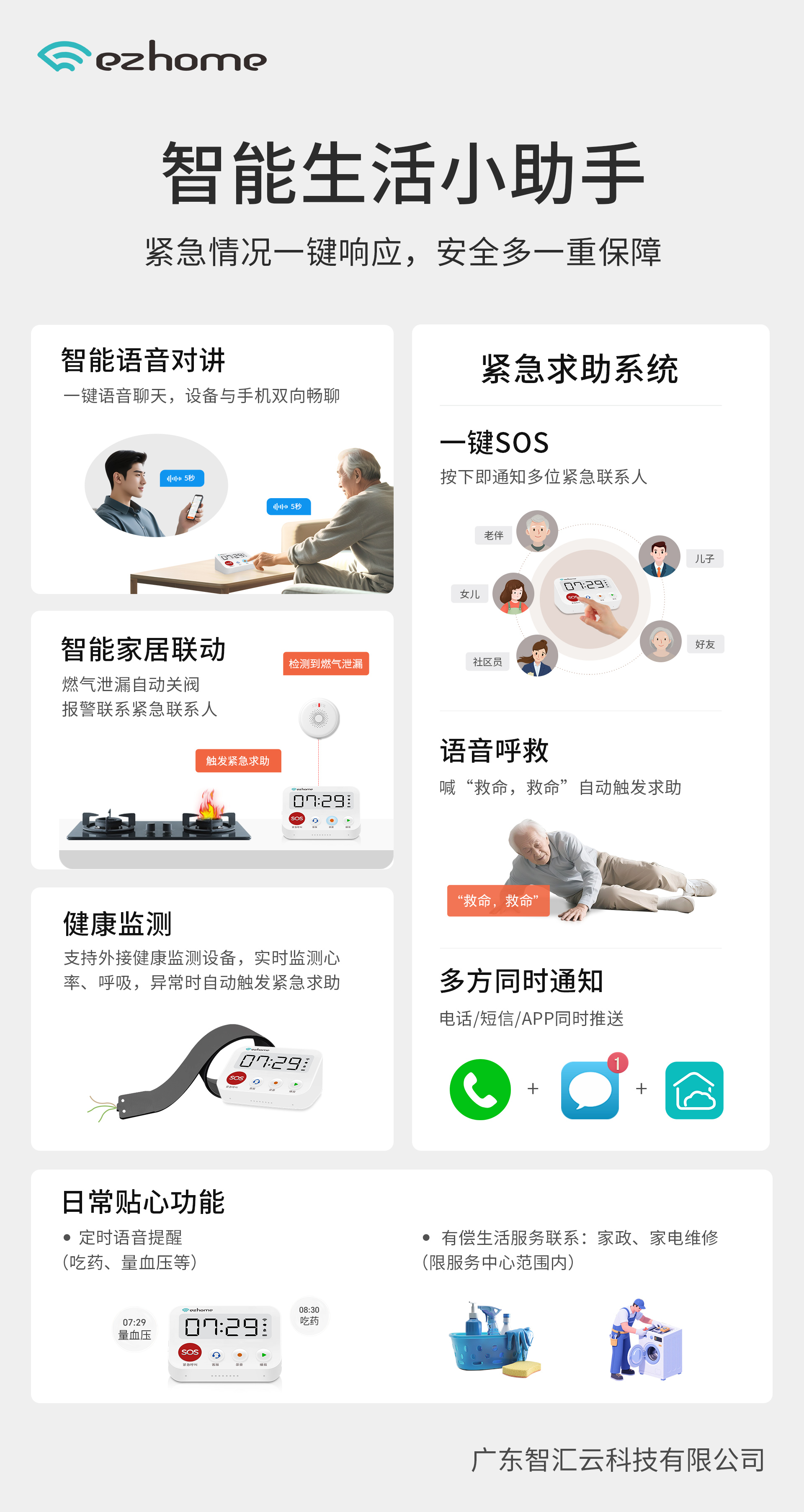 智匯云科技提供覆蓋居家安全、健康管理、生活服務(wù)等多維度的產(chǎn)品矩陣,并支持與第三方康養(yǎng)平臺的深度集成與API對接: