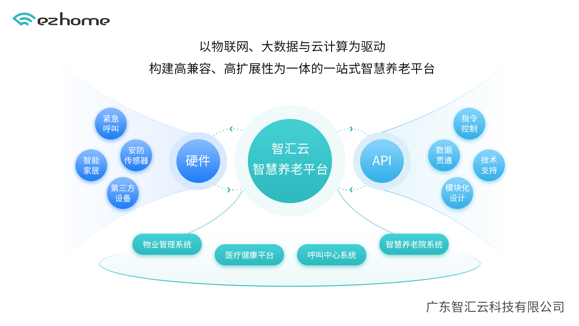智匯云智慧養(yǎng)老平臺以物聯網、大數據與云計算為技術底座,構建了高兼容、高擴展性的一站式服務體系。