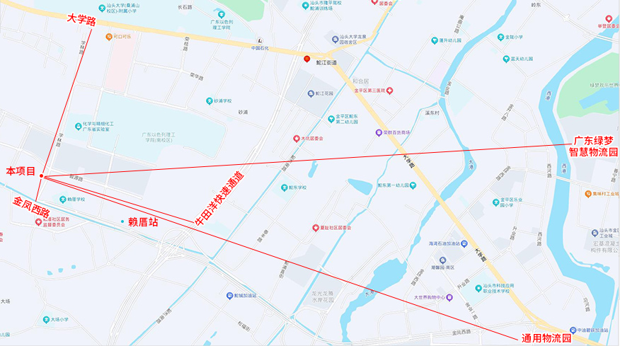 地理位置優(yōu)越,距離粵東城際鐵路-賴厝站1公里,距離潮汕環(huán)線高速鮀蓮站5公里,距離在建牛田洋快速1.5公里,南距離金鳳西路300米,北距大學(xué)路1.2公里,無縫連接城市交通動(dòng)脈; 30分鐘通達(dá)市中心、機(jī)場(chǎng)及物流效率領(lǐng)先。距離汕頭綠夢(mèng)智慧物流園區(qū)4.1公里,距離通用物流園4公里,物流方便快捷促進(jìn)園區(qū)項(xiàng)目資源要素快速流動(dòng)。