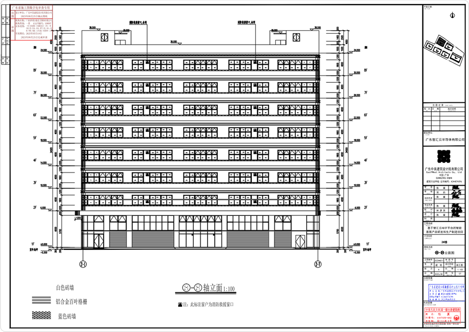 - 1-5棟為8層通用廠房共計(jì)42127.31㎡,廠房均高為 36.3m;其中 1棟建筑面積 9536.86 ㎡, 2棟建筑面積 8589.85 ㎡, 3棟建筑面積 7359.36 ㎡, 4棟建筑面積 8165.66㎡, 5棟建筑面積 8475.58 ㎡;