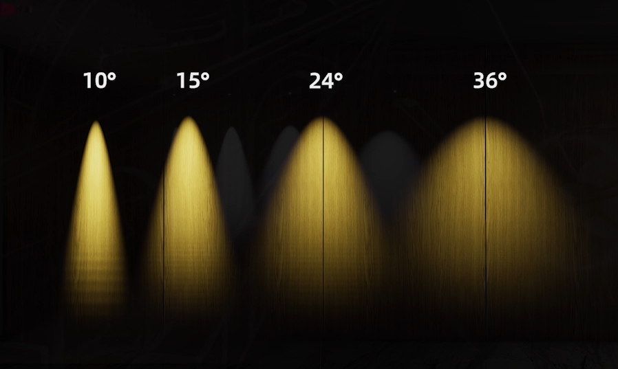 光束角越大,照明區(qū)域越廣泛;光束角越小,光線越集中,不同的光束角營(yíng)造的空間氛圍也不同。